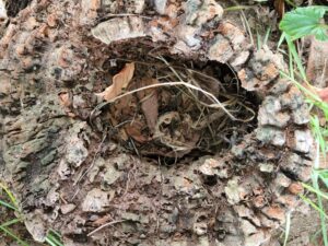 So there’s been a good rain, and you know where there’s a good stump that’s likely to collect water. By the way, a full tree with a hollow in the trunk works, too. It doesn’t have to be broke off to work. You do, however, want to pay attention to what kind of tree you’re collecting from. It adds to the personality of your stump water – water from an oak is gonna be different from water you get from a pine.